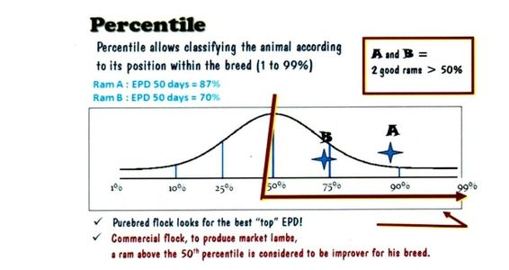 The percentile ranks the animal within its population according to its EPD values. At a glance, you will know if the animal is improver or not for the breed.